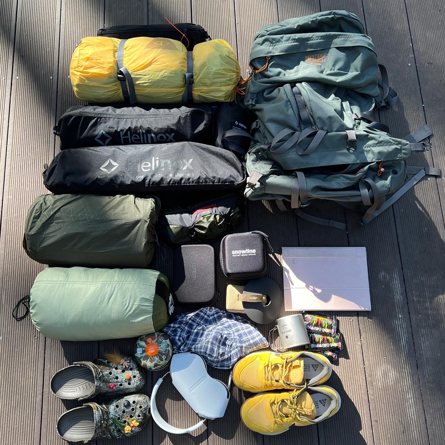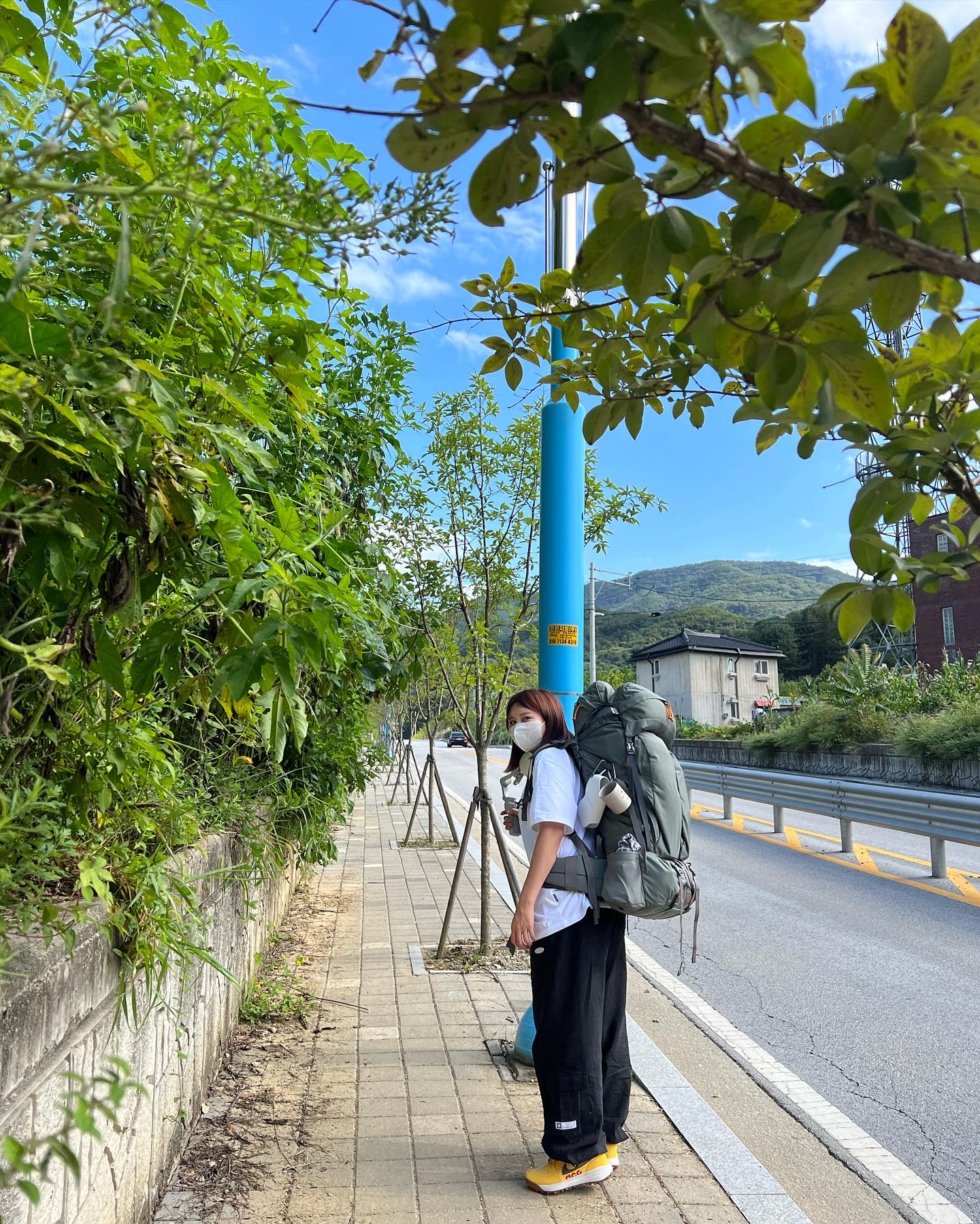 텐트와 침낭 식기 등 캠핑에 필요한 모든 물건들을 등 뒤에 지고 떠나는 캠핑이랍니다!